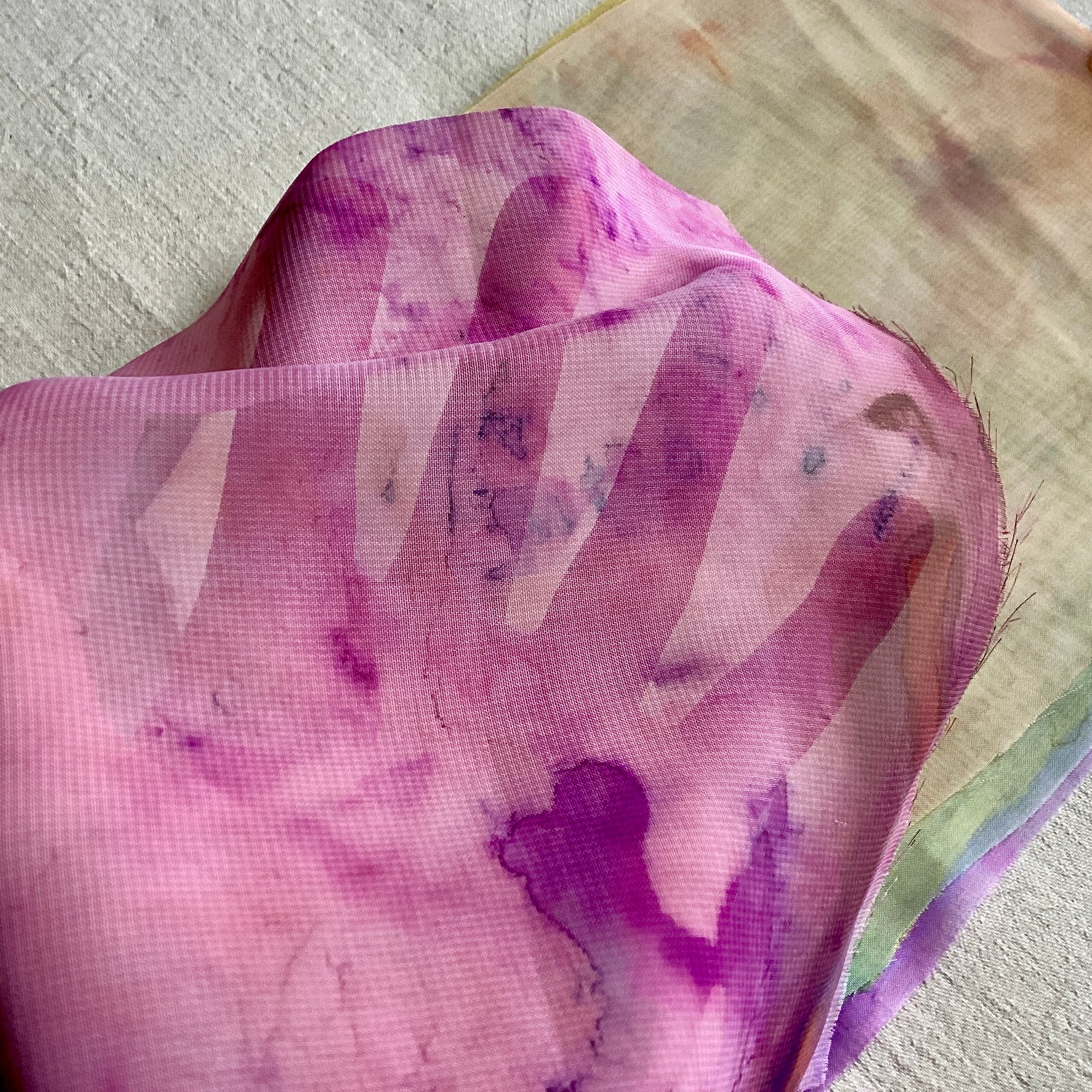 Available while stocks last: this is a curated selection of beautiful hand-painted chiffon scraps, perfect for any kind of experimental or intuitive textile art.