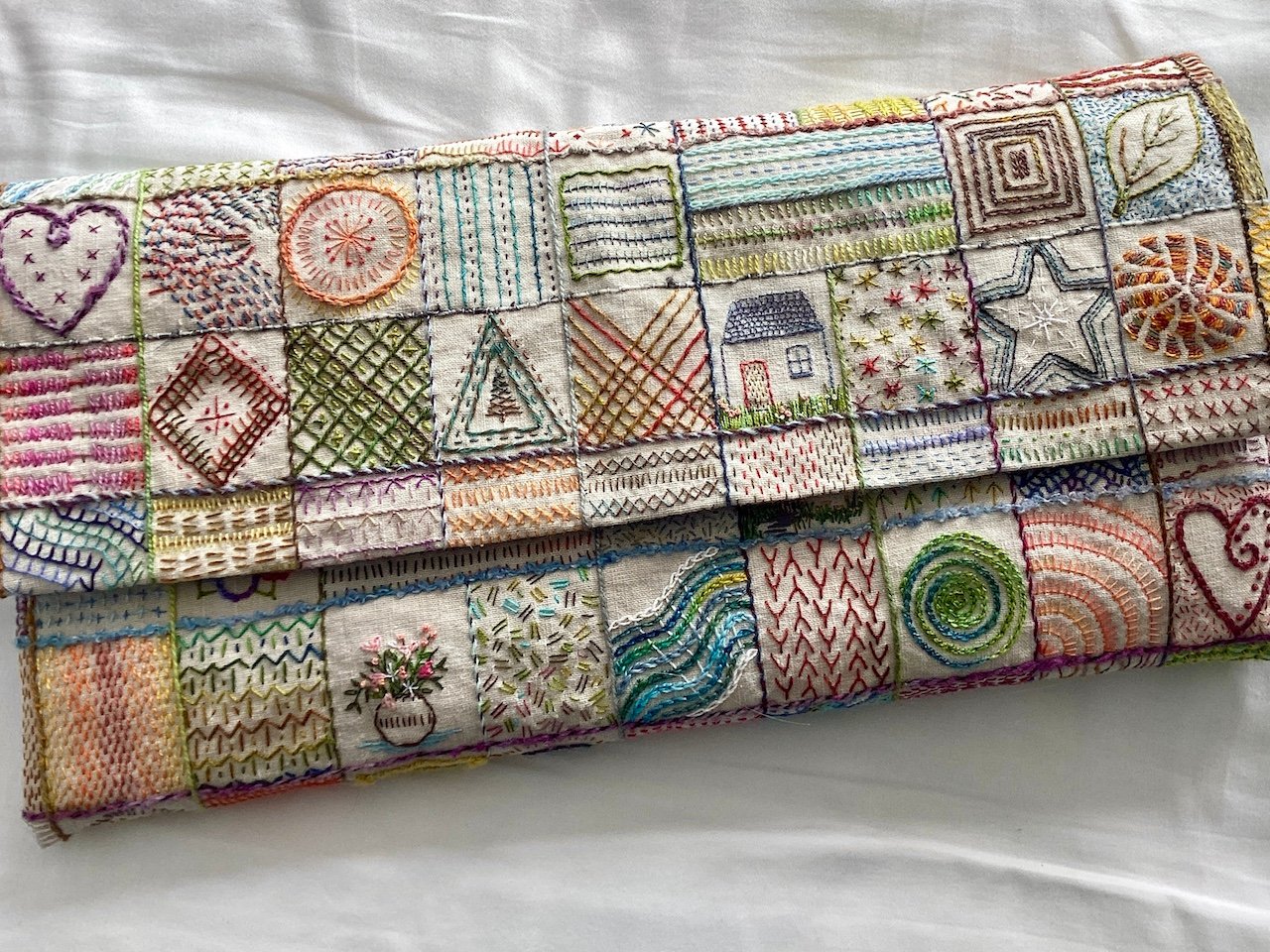 I do not explain in this document how to work any of the stitches, nor do I tell you what stitches to use - all of that is entirely up to you. This is a template, not a kit, designed to encourage you to create your own unique embroidered cloth. If you are an absolute beginner and need to know how to do (for example) running stitch or couching, you could refer to one of the many embroidery books or online videos and tutorials that talk you through getting started. You might also consider signing up for my online course, Intuitive Daily Stitching, which demonstrates several stitch types that you can practise and has information on choosing fabric and thread, and on maintaining a mindful daily stitch practice: karen-turner-stitching-life.teachable.com/p/intuitive-daily-stitching